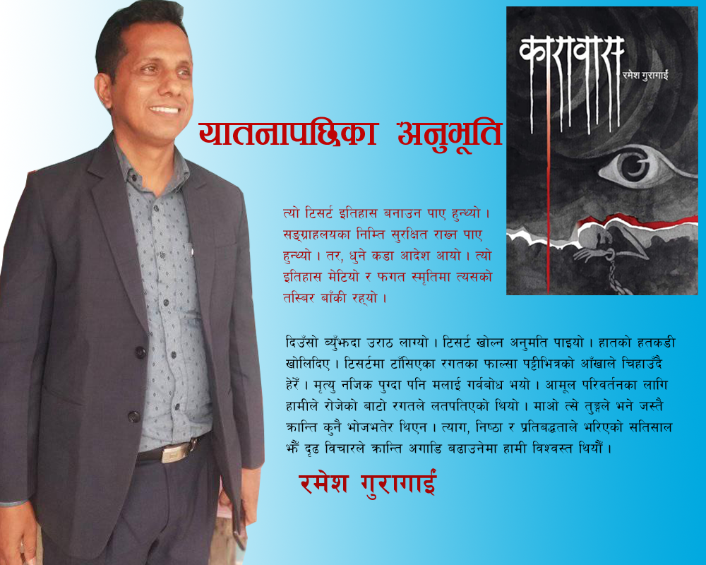 रमेश गुरागाईं त्यो दिन साँझको ५ बजेको रहेछ । सँधै झै घण्टी बजेपछि भात बाँड्न थालेका थिए । मलाई पनि ‘उठ्’ भनेर थर्काउँदै थिए पिपा र सिपाही । मैले एक छाक नखाएर अघोषित विरोध जनाउने सोच बनाइसकेको थिएँ । खान मन पन...