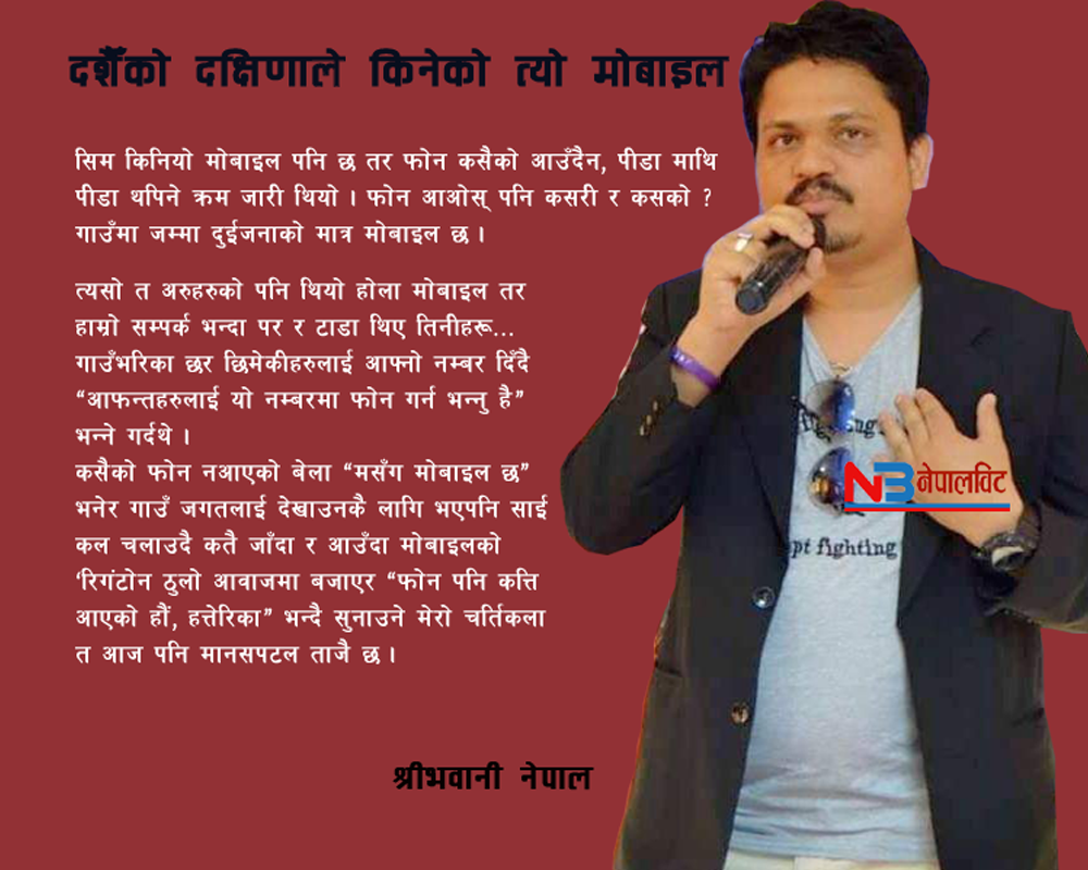 श्रीभवानी नेपाल ऊ बेलाको दशैँ वा कुनै पनि चाडपर्व आज जस्ता हुँदैन थिए । आजको आधुनिक युगमा हरेक चाडपर्वहरु आधुनिकीकरण हुन थालेका छन् । (तिज एक महिना अगाडीदेखि मनाउने, दर खानु पर्ने दिन तर (मादक पदार्थ) खाने र पिउने...