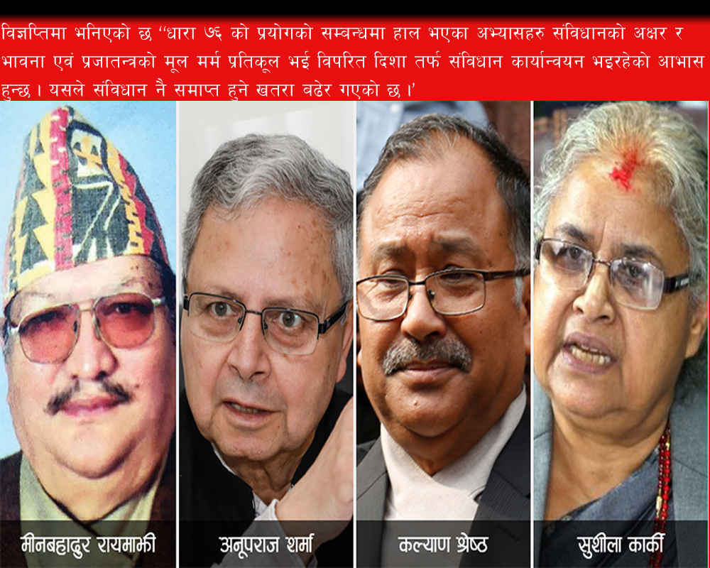 २०७८ जेठ १४ गते, इटहरी । सर्वोच्च अदालतका पूर्वप्रधानन्यायाधीशहरुले प्रतिनिधिसभा विघटन र संविधानको कार्यान्वयन विपरीत दिशातर्फ गइरहेकोले अब संविधान नै समाप्त हुने खतरा बढेको धारणा सार्वजनिक गरेका छन् ।