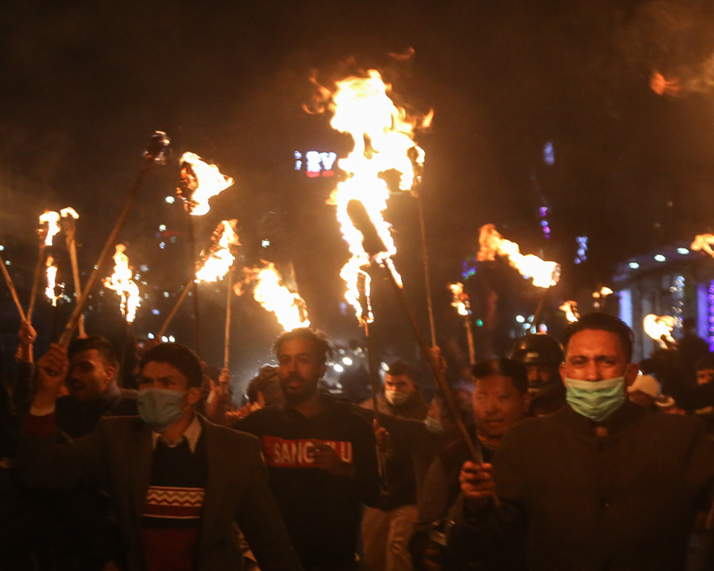 २०७७ पुस ९ गते, इटहरी । ओली सरकारले गरेको संसद विघटनको विरोध गर्दै नेकपा (प्रचण्ड–नेपाल) समूहको विधार्थी संगठनले आज साझँ काठमाण्डौँमा राँके जुलुसको प्रदर्शन गरेको छ । बानेश्वरबाट विजुली बजार हुँदै माइतीघरसम्म निकाल...