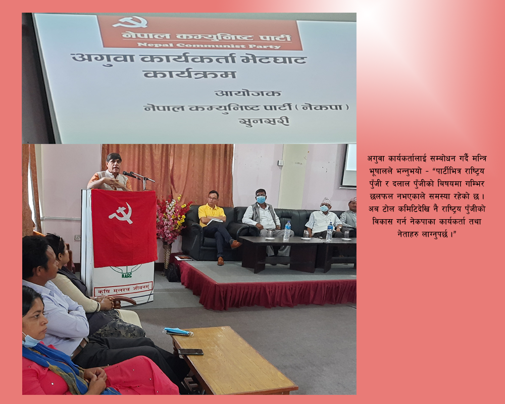 असोज ८ गते, इटहरी । कृषि मन्त्रालयलाई परम्परागत रुपमा सञ्चालन गर्दा त्यसले प्रतिफल दिन नसक्ने कृषि तथा पशुपंक्षी विकास मन्त्रि घनश्याम भूषालले धारणा राख्नुभएको छ । आज इटहरीमा अगुवा कार्यकर्ता भेटघाट कार्यक्रममा मन्...