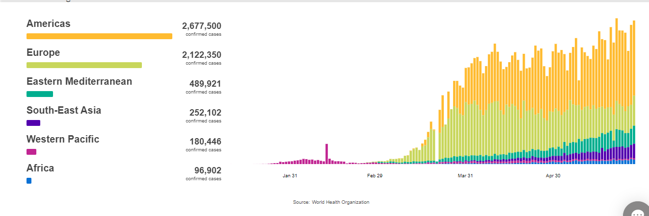 १८ जेठ, काठमाडौं । विश्वभर कोरोना भाइरस (कोभिड-१९) बाट विश्वभर संक्रमित हुनेको संख्या ६० लाख नाघेको छ । जोन्स हप्किन्स युनिभर्सिटीले तयार पारेको तथ्यांक अनुसार अहिलेसम्म विश्वभर कोरोना भाइरसबाट संक्रमित हुनेको संख्या ६० लाख ६३ हजार ७२५ पुग...