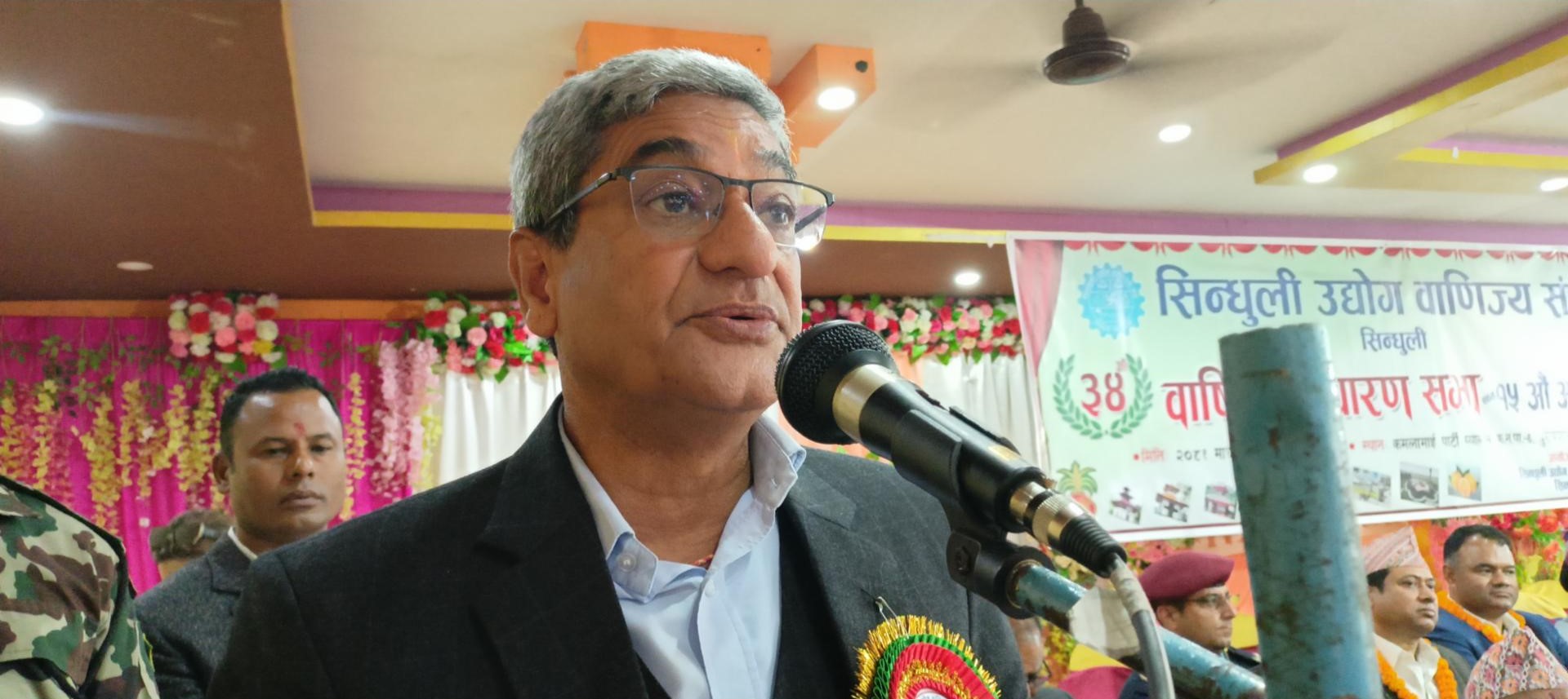 सिन्धुली । गृहमन्त्री रमेश लेखकले कुनै पनि उद्योगी, व्यवसायीले डर, त्रास र असुरक्षाको अनुभूति गर्नु नपर्ने बताएका छन् । उनले सरकारले उद्यमी, व्यवसायीको सुरक्षाको नीति लिएको बताए। सिन्धुली उद्योग वाणिज्य संघको ३४औं वार्षिक साध...
