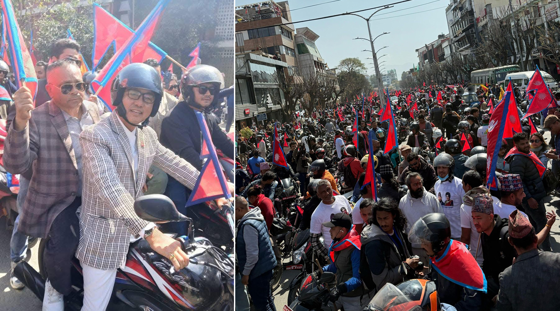 इटहरी । राष्ट्रिय प्रजातन्त्र पार्टी (राप्रपा) ले बुधबार काठमाडौंमा मोटरसाइकल र्याली निकालेको छ । राजतन्त्रको पक्षमा राप्रपाले बबरमहलदेखि नारायणहिटीसम्म मोटरसाइकल र्याली गरेको हो । बबरमहलबाट शुरू भएको र्याली त्रिपुर...